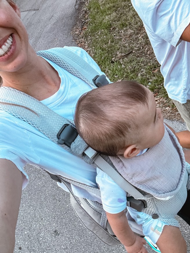I’m idealizing my walks through our neighborhood, carrying my baby boy snuggly in a front carrier. I marvel at the strength I’ve built to carry his 25+ pounds for over two miles, a proud “rucking” journey we take together. It’s a powerful feeling, knowing I could go on longer if he’d let me. The weather right now is crisp and perfect, the kind of weather that lifts your spirit.